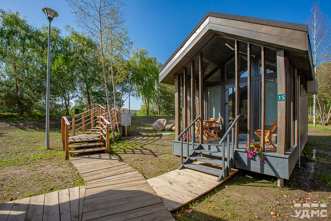 Для проживания гостей построено 18 уютных комфортабельных домиков (номеров) с террасой, разных по площади, а также 1 гостевой дом, предназначенный для размещения физически ослабленных лиц.