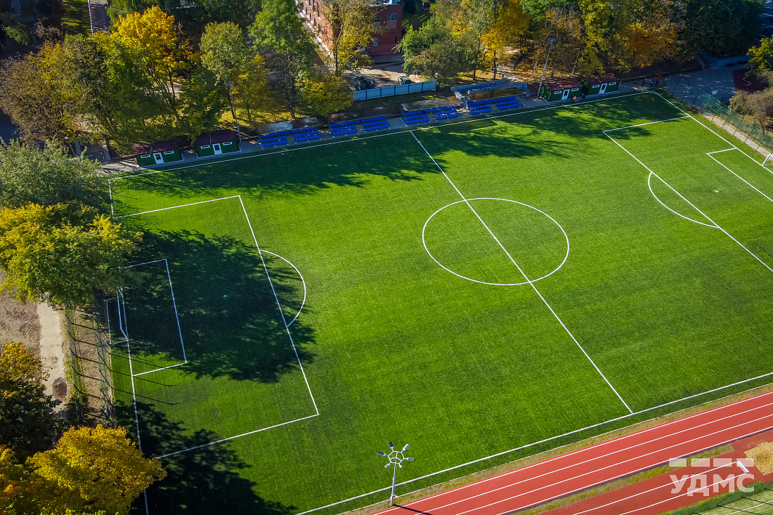 На стадионе созданы комфортные условия: дети могут переодеться в специальных раздевалках, а не на улице, установлено видеонаблюдение, есть биотуалеты, организовано освещение, чтобы заниматься спортом вечером.