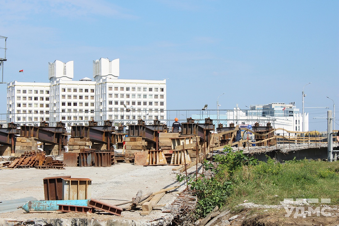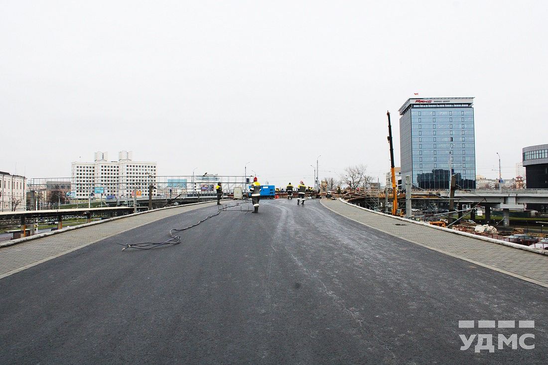 На данный момент ведутся работы по демонтажу и выдомкрачиванию пролётных строений для их ремонта и обратного монтажа. Кроме этого, на заключительном этапе устройство дождевой канализации, в том числе закрытого перехода через ул. Могилёвскую.