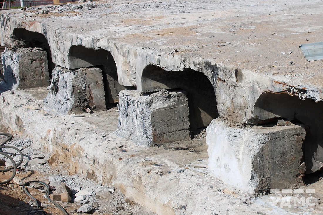 Также ведется установка дельта-блоков, необходимых для устойчивости конструкций и разделения потоков движения.